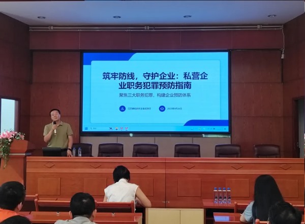 培訓中,法律專家以私營企業(yè)常見的三大職務(wù)犯罪為核心,結(jié)合近年來真實的司法案例,從犯罪構(gòu)成、法律后果、司法認定標準等維度進行了深度解讀。授課過程中,專家不僅剖析了職務(wù)犯罪的隱蔽性與危害性,更針對性地提出了“事前預(yù)防、事中管控、事后應(yīng)對”的全鏈條防控思路,指導(dǎo)企業(yè)如何構(gòu)建科學有效的職務(wù)犯罪預(yù)防體系,幫助與會人員精準把握合規(guī)管理的重點與難點。